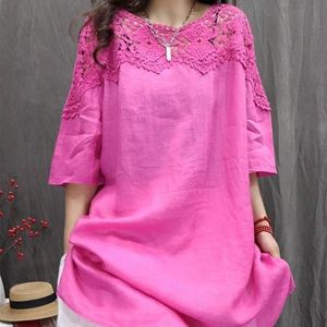 中长款棉麻半袖上衣刺绣镂空感短袖T恤小衫夏季新款文艺女装