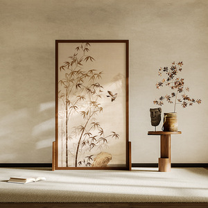 中式实木屏风隔断宋代美学家用玄关客厅茶室移动遮挡装饰竹子座屏