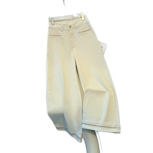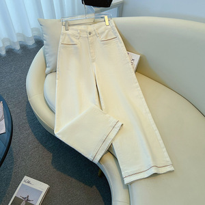 米杏色阔腿牛仔裤女2025年新款秋季时尚百搭高腰宽松小个子直筒裤