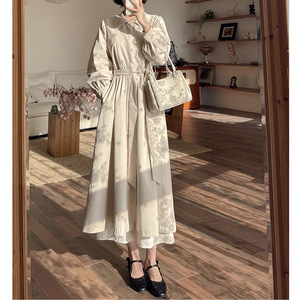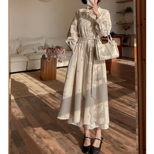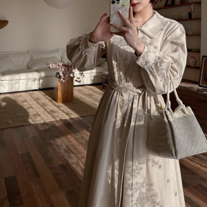 西雅图--2025秋季新款舒fu蕾娃娃领腰带英伦风气质长款外套女上衣