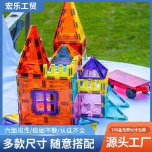 跨境新款彩窗磁力片散片强磁儿童玩具拼搭益智彩色磁力积木套装