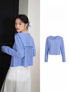 蓝色海军领针织衫开衫背心吊带两件套装25秋季穿搭新款女上衣