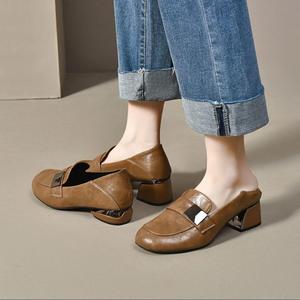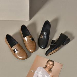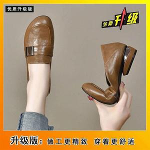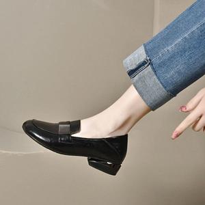 单鞋女春秋新款粗跟软底中跟低跟百搭夏季浅口圆头配裙乐福鞋