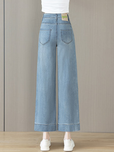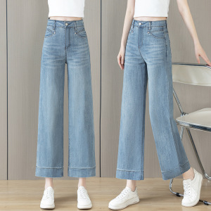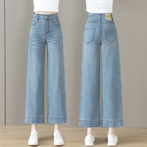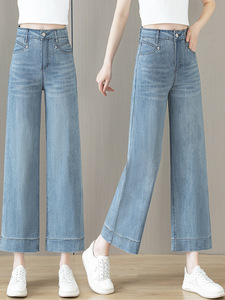 薄款直筒牛仔裤女夏季2025新款小个子窄版阔腿裤高腰超薄九分裤女