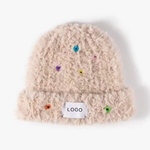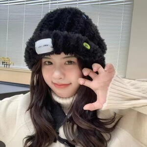 可爱小熊毛线帽子女冬季加厚毛绒保暖毛毛包头帽秋冬大头围针织帽