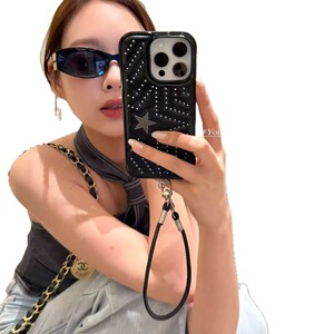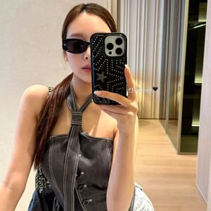 小众时髦酷黑皮质铆钉星星15适用iPhone16promax苹果15手机壳14女