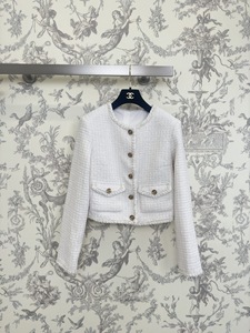 新款通勤小香风毛呢外套女法式洋气气质时尚都市女圆领纽扣外套