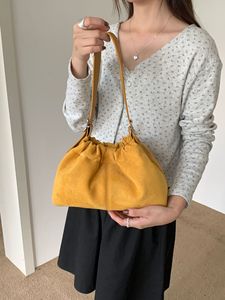 韩国小众设计感麂皮绒ins风时尚褶皱收口日常手拎单肩腋下女包包
