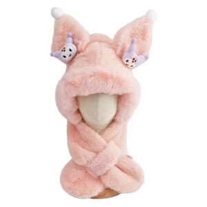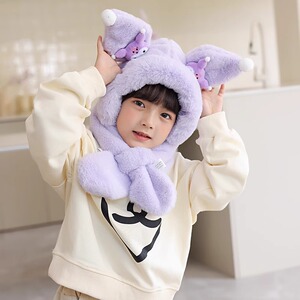 库洛米儿童帽子围巾一体帽可爱护耳帽女童加绒加厚幼儿园公主风