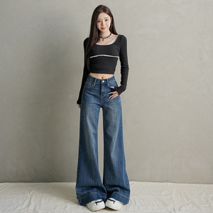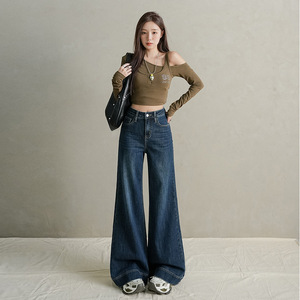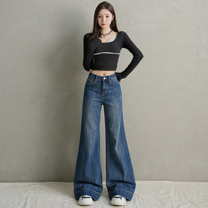 稚橘#美式复古水洗弹力微喇牛仔裤女高腰显瘦遮肉休闲百搭拖地裤