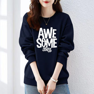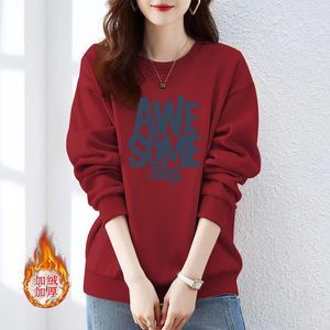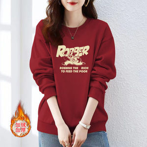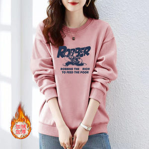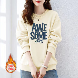 卫衣女春秋新款薄款oversize宽松圆领内搭加绒加厚冬季上衣潮