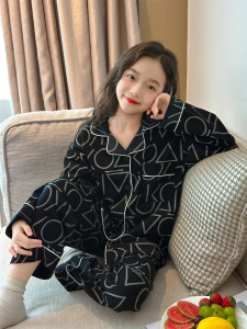 女童高端睡衣春秋2025新款女大童纯棉家居服初中生长袖套装青少年