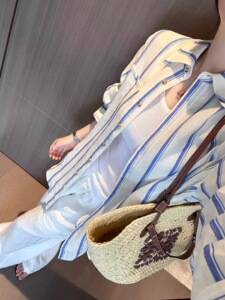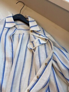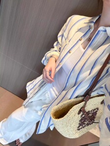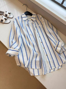 韩系蓝色条纹亚麻防晒衬衫女2025秋季新款宽松透气薄款外搭上衣潮