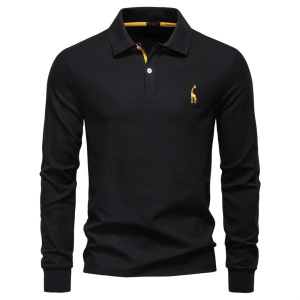 百搭翻领长袖polo男2025年纯色休闲POLO衫高品质男式秋季上衣翻领