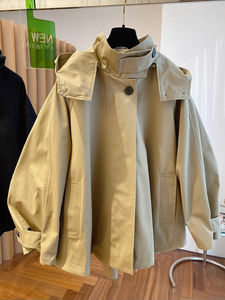 大码复古时尚洋气斗篷式设计感小众宽松休闲连帽风衣外套女春秋季