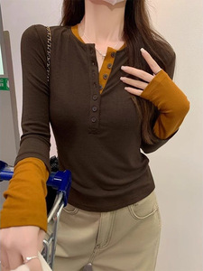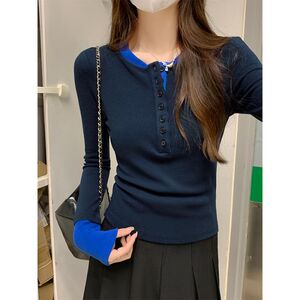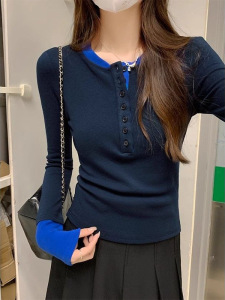 春秋冬季撞色假两件独特别致内搭打底衫女设计感减龄辣妹长袖上衣