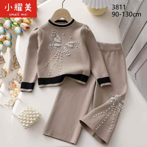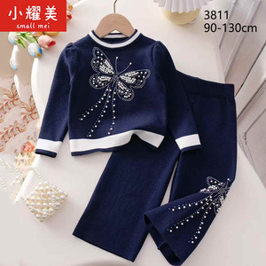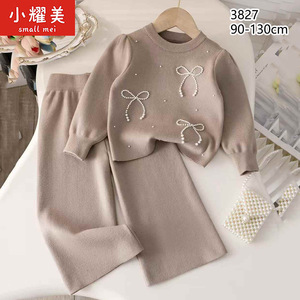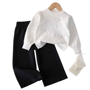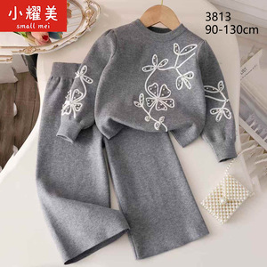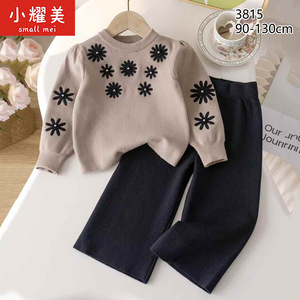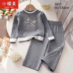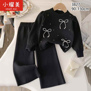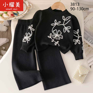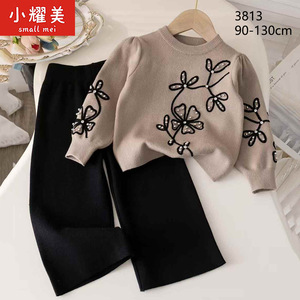 2025秋冬季圆领衫童装儿童新款宝宝针织衫套装两件套毛衣韩版女童
