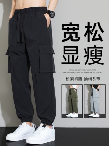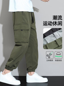 啄木鸟夏季薄款工装裤男宽松潮牌百搭束脚九分裤学生运动休闲裤子