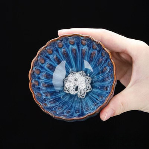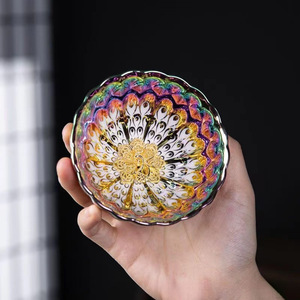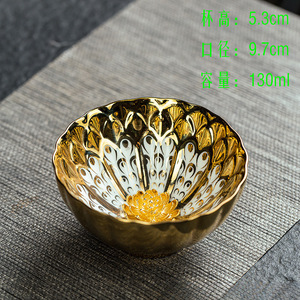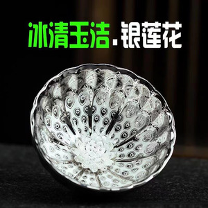 跨境热卖主人杯茶杯莲花杯花开富贵全银银莲花冰清玉洁银孔雀陶