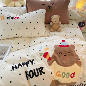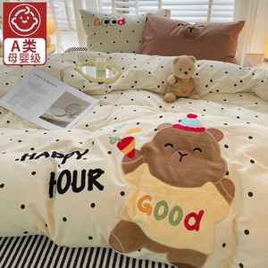 A类加厚全棉磨毛四件套卡通贴布绣纯棉被套床单人宿舍学生三件套