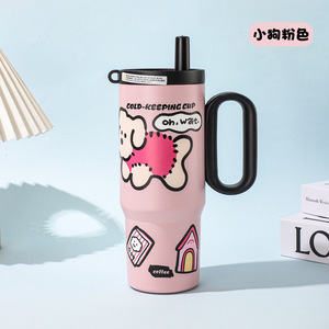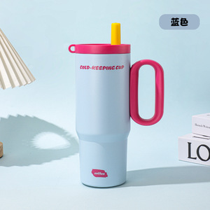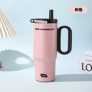 新款316不锈钢保温杯保冷女生带吸管车载水杯大容量带手柄冰霸杯