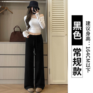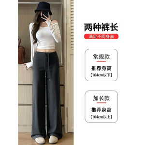灰色运动裤女2025年新款高腰阔腿垂感显瘦春秋季直筒窄版休闲卫裤