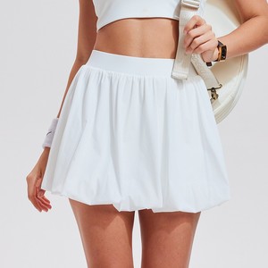跨境新款白色蓬蓬花苞裙女高腰显瘦休闲运动半身裙小个子辣妹短裙