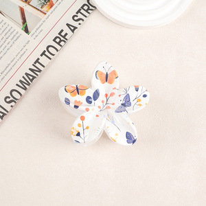 小清新水墨晕染花朵抓夹拍照氛围感鸡蛋花鲨鱼夹新款印花发夹女