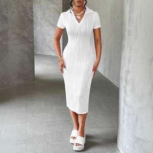 2025欧美跨境新款春夏季亚马逊V领休闲时尚褶皱短袖女士衬衣连衣