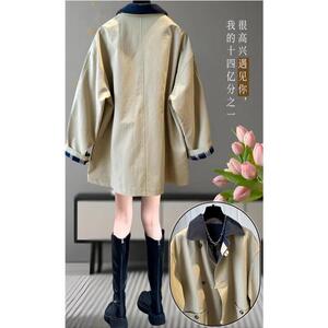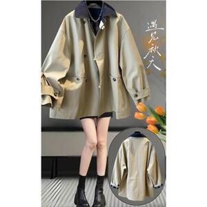 春秋胖妹妹中长款翻领英伦风风衣外套女大码宽松高级感上衣百搭潮
