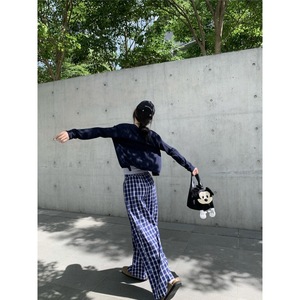 休闲套装带胸垫吊带背心女长袖晒外套早秋格子阔腿长裤时尚