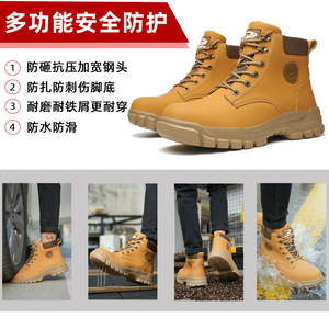 亚马逊批发高帮劳保鞋 防砸防刺穿轻便舒适工作鞋 防泼水久穿不累