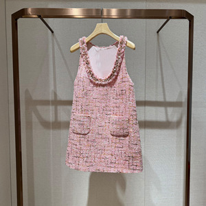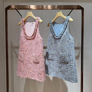 2025年秋季新款气质名媛小香风甜美粉色粗花呢无袖连衣裙XRJ4L19D