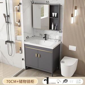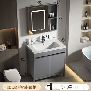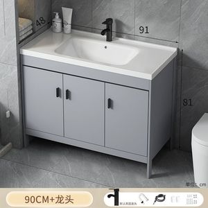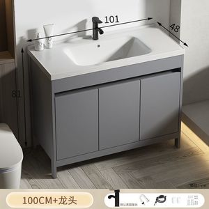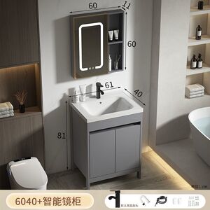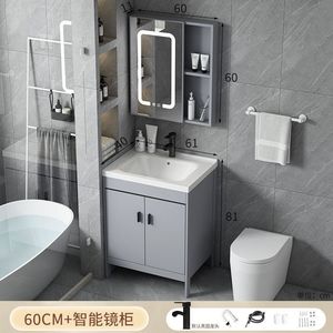 太空铝浴室柜洗手盆柜卫生间智能落地式阳台一体陶瓷洗脸盆柜组合