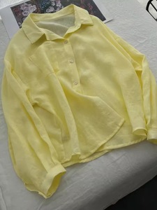CHAO火推荐!天丝苎麻柠檬黄防晒衬衫女新款亚麻衬衣薄款长袖上衣
