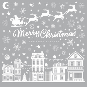 圣诞节装饰窗户静电贴商场橱窗玻璃贴纸冬季雪景雪花雪屋圣诞贴纸