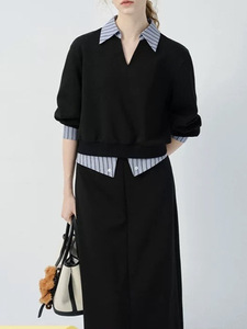 【现货】时尚套装女2025秋季新款巧妙拼接设计高级时髦两件套