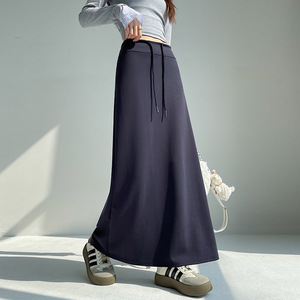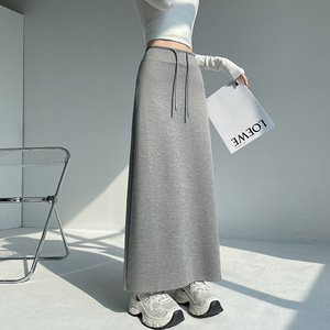 25韩系秋冬休闲抽绳松紧腰A字半身裙设计感劈叉简约慵懒百搭半裙