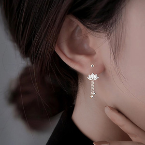 莲花流苏耳环女高级感极简耳坠冷淡风韩国耳饰品时尚轻奢小众百搭