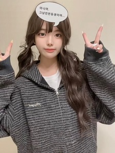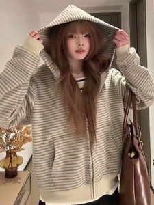 2025秋季新款条纹连帽拉链外套百搭小众休闲宽松休闲美式开衫卫衣