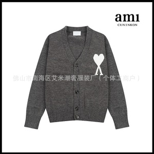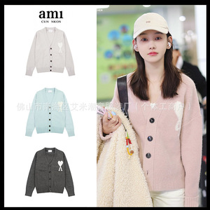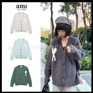 AMI大爱心提花毛衣针织衫秋冬松休闲宽松男女情侣同款V领开衫外套