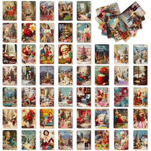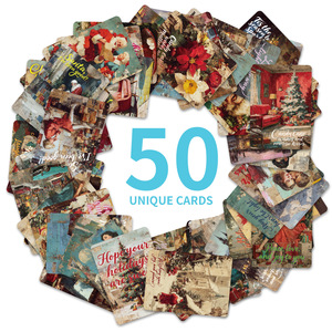 50张跨境新款圣诞文字卡片创意怀旧圣诞氛围卡片背面空白可留言卡