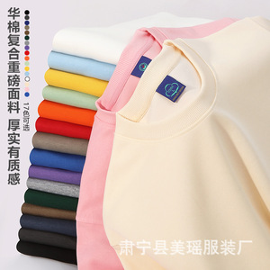 420克银狐绒重磅圆领卫衣男秋冬款加绒纯色男秋装新美式休闲外套