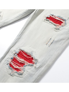 跨境专供AMIRI破洞垫布牛仔裤男款街头嘻哈夜店裤子正确版亚马逊