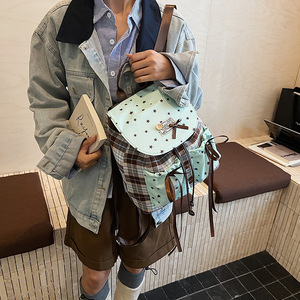 2025新款小众复古学院风双肩包包女蕾丝蝴蝶结时尚洋气百搭小背包