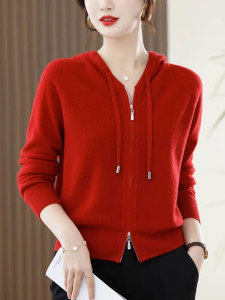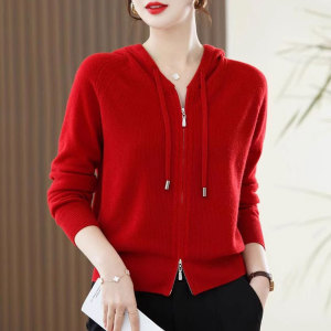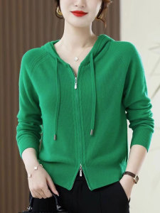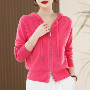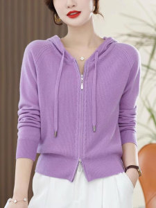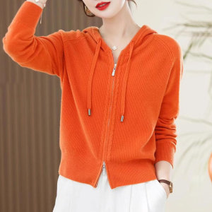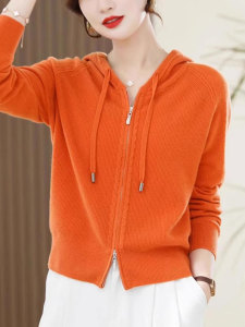 【厂家直供】纯色连帽开衫外套女春秋新款宽松短款外搭毛衣针织衫