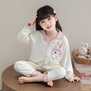 女童睡衣春秋季家居服长袖儿童可爱卡通开衫套装卡通女宝宝套装