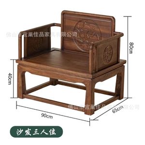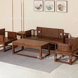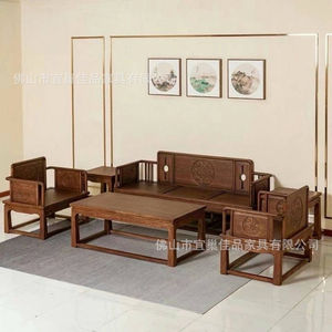 新中式北方老榆木实木沙发组合简约古典客厅中国风家具仿古胡桃色