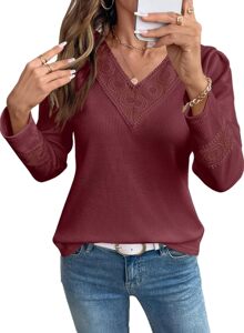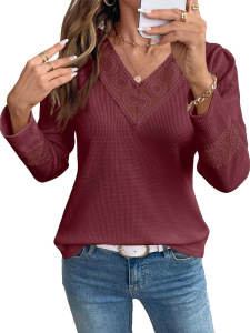 2025SHEWIN 女式上衣考究休闲 V 领华夫格针织镂空长袖衬衫轻质秋