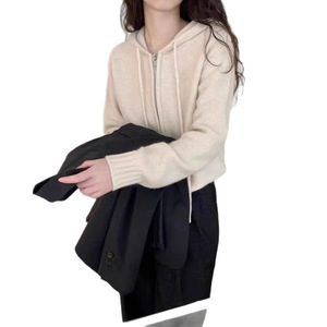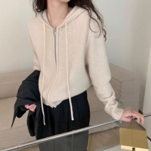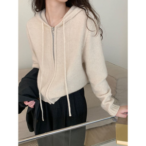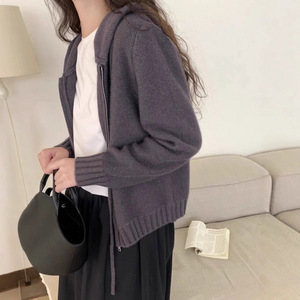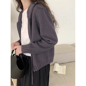 秋冬爆款仿羊毛正反针长袖针织连帽开衫上衣宽松慵懒风毛衣外套女